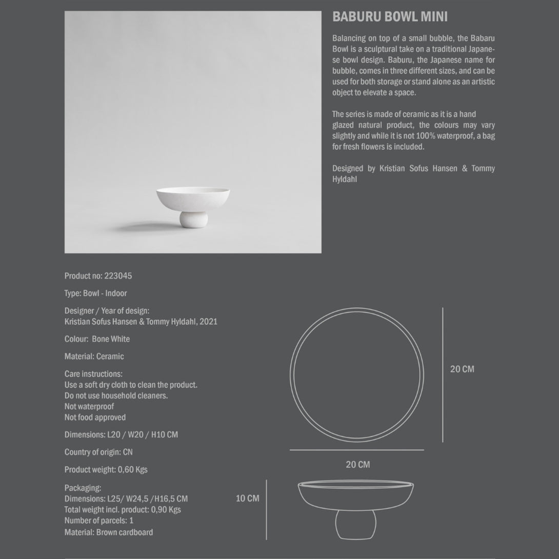 *Baburu bowl care instructions: to clean the product, use a soft, dry sponge. Do not use household cleaners. The tray is not 100% waterproof.