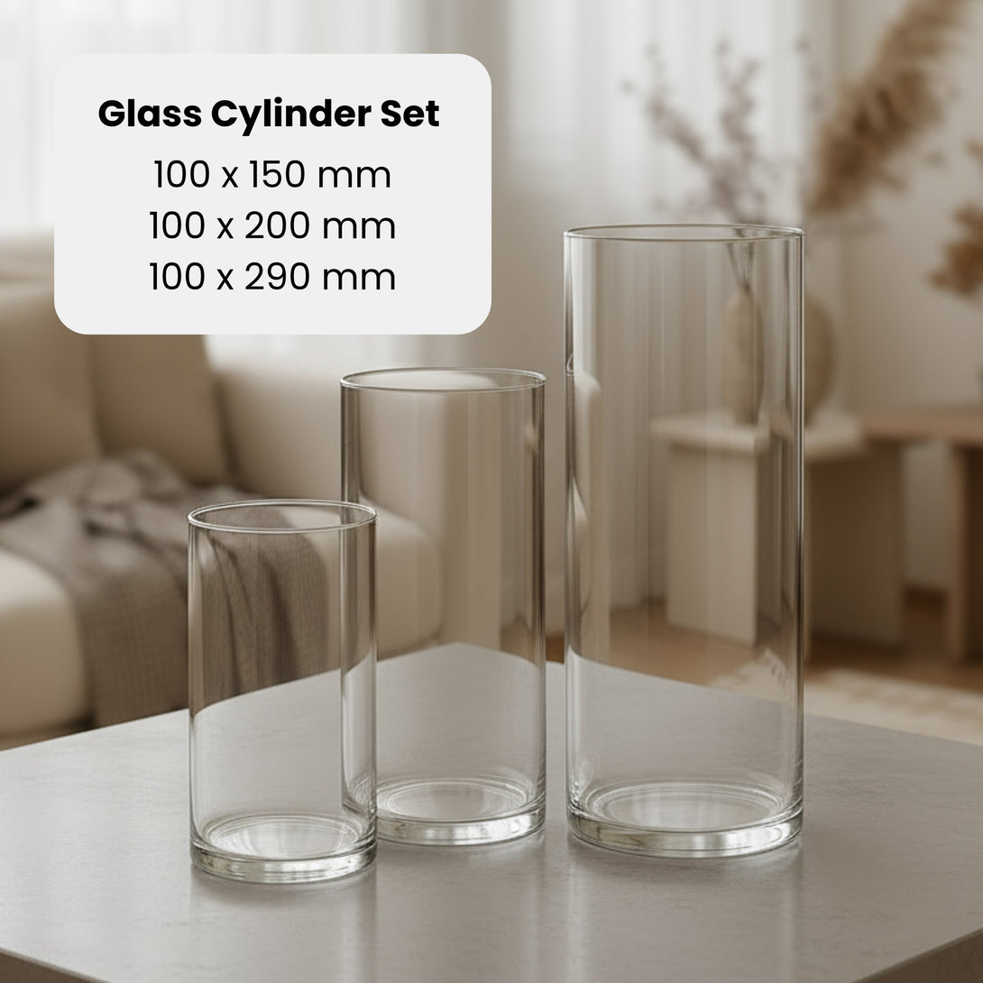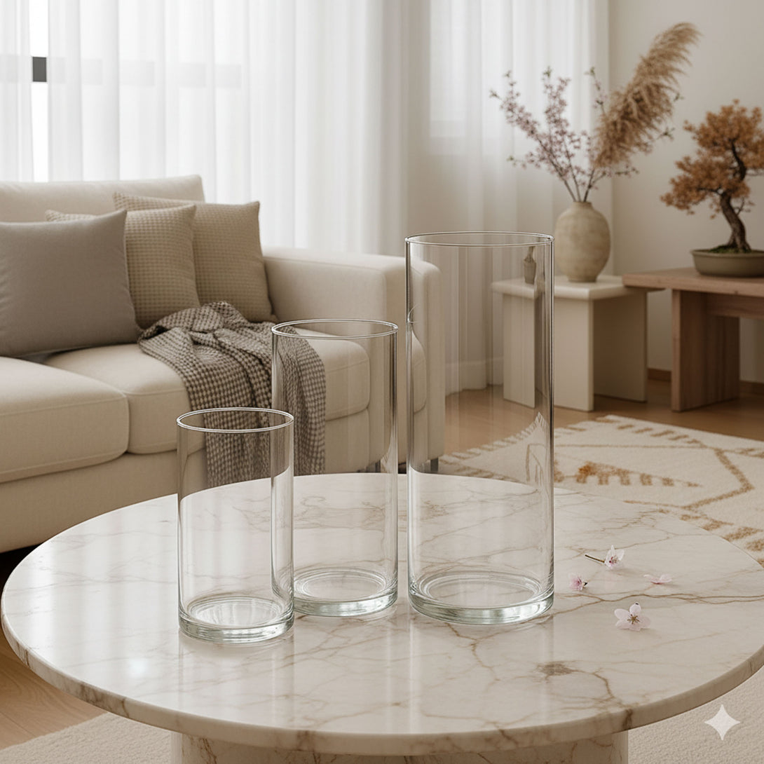 The Candlera Glass Cylinder Set is a premium collection of three elegantly designed glass vessels, crafted to enhance the beauty of Candle Sand displays and elevate modern home decor. Precision-made for versatility, this set includes three sizes: